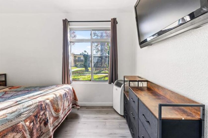 Welcome to 432 Edgehill Lane, Unit 83, a well-kept ground-level condo in the gated Arbor Hill community, just minutes from Camp Pendleton and a short drive to the beach. This home offers a comfortable, open layout with updated flooring throughout and a private, enclosed patio that extends your living space and gives you a quiet place to unwind. The living room flows easily into the dining area and kitchen, creating a practical setup that works well for everyday living. The kitchen features stainless steel appliances, warm cabinetry, and ample counter space. The bedroom is generously sized with good natural light and direct access to the updated bathroom, which includes a modern vanity and tiled shower surround. Arbor Hill is VA approved and offers amenities that include a pool, spa, fitness center, BBQ area, and wide open greenbelts that make the community feel open and relaxed. HOA dues include water, sewer, trash, and exterior maintenance, helping keep monthly expenses predictable, which is especially helpful for VA buyers. Conveniently located near Camp Pendleton, Downtown Oceanside, the Sprinter, shopping, dining, and coastal access, this condo is a strong option for VA buyers, first-time buyers, downsizers, or anyone looking for an affordable way to live close to the coast without sacrificing convenience.