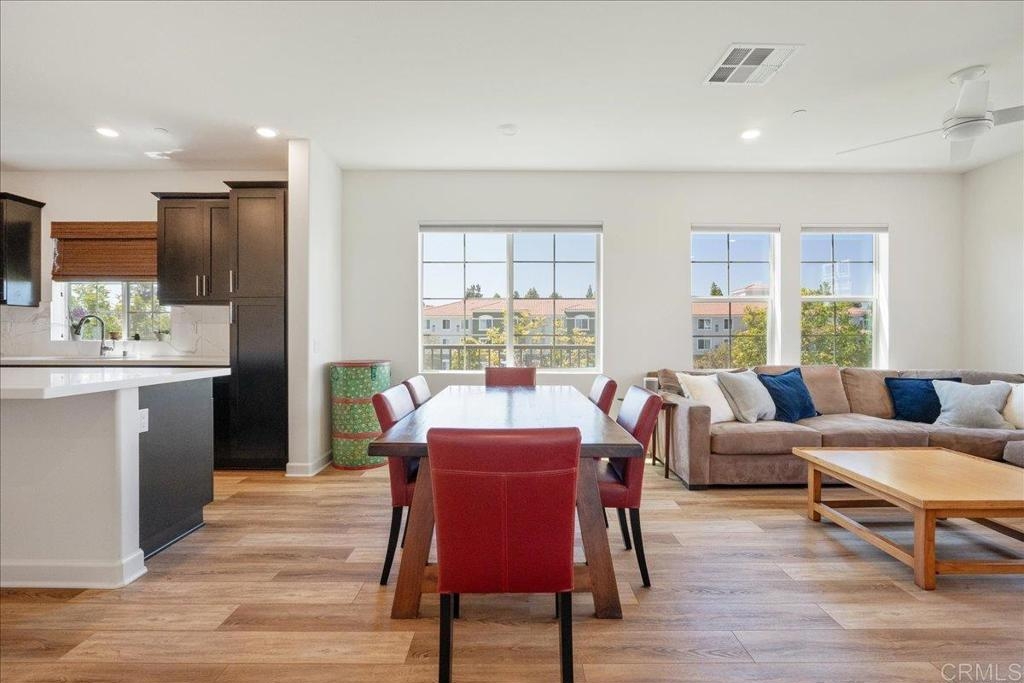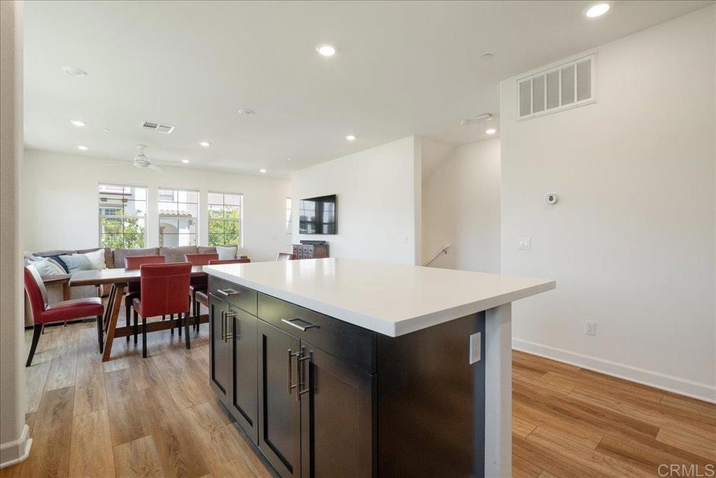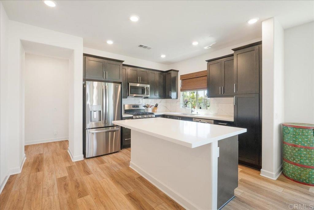 Welcome to 4366 Pacifica Way, Unit 5, a beautifully upgraded end-unit townhome nestled in the prestigious gated community of St. Cloud in Oceanside. This spacious 4-bedroom, 3.5-bathroom home offers 2,213 square feet of modern living across three thoughtfully designed levels. The flexible floor plan includes a full bedroom and en-suite bathroom on the first floor—perfect for guests or a home office—while the second level features an expansive open-concept living area, gourmet kitchen, and luxurious primary suite. Upstairs, two additional bedrooms and a full bathroom complete the home’s generous layout. Dual-pane windows and warm luxury vinyl plank (LVP) flooring set the stage for a contemporary yet inviting ambiance. The spacious kitchen offers ample cabinet storage, quartz countertops, modern stainless steel appliances and a large island that seamlessly connects the dining and living areas—ideal for entertaining or unwinding at the end of the day. Set on a quiet corner lot with greenbelt views, this townhome offers both privacy and peaceful surroundings. The St. Cloud community provides a resort-style lifestyle with amenities such as an Olympic-sized pool, spa, clubhouse, fitness center, BBQ areas, picnic spots, and playgrounds. The attached two-car garage offers direct access, extra storage, a quiet garage door, and a door leading out directly to the adjacent green belt. This home is situated near Martin Luther King Middle School, the highly rated Ivey Ranch Elementary, and is just minutes from El Camino High School and the exciting new developments at El Corazón, home to the Frontwave Arena and the SD Clippers. Whether you're searching for a primary residence or a vacation retreat, this home is a rare opportunity to experience the best of coastal living. Claim your place in one of Oceanside’s most desirable communities!