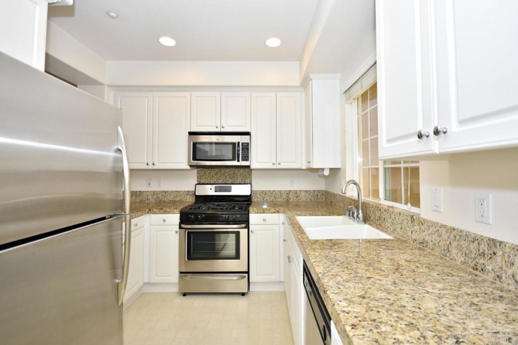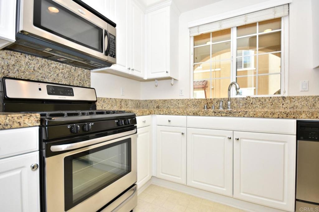 Excellent floor plan coupled with attention to detail! Upgrades include built-in media niche, upgraded carpet, all appliances included (stainless in kitchen), beautiful white kitchen cabinets with granite counters. All appliance included, including full sized washer and dryer! Well located in gated Oceanside community, this unit offers a resort-like pool, spa & barbecue area for relaxation + workout room. 2 car attached garage!