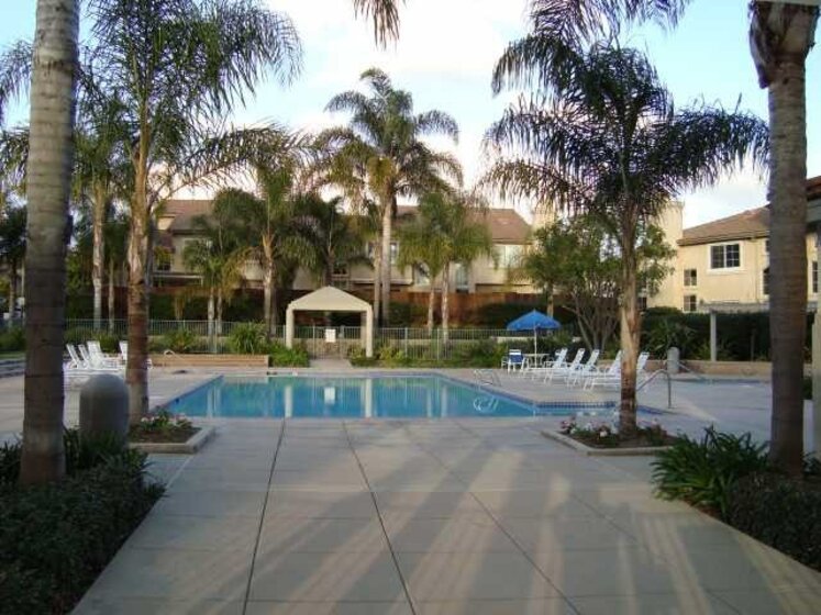 Great townhome in an impressive gated community of Alacima, in Rancho Del Oro. Stainless steel appliances in spacious kitchen with Wilsonart wood flooring. Lite n' Brite open floor plan with vaulted ceilings and built-in entertainment alcove above the fire place. Custom paint and upgraded light fixtures throughout. Laundry room with full size washer & dryer convey. Private tropical patio and attached two car garage. Community pool, spa, BBQ & open space. Close to Beaches, Sand & Surf.