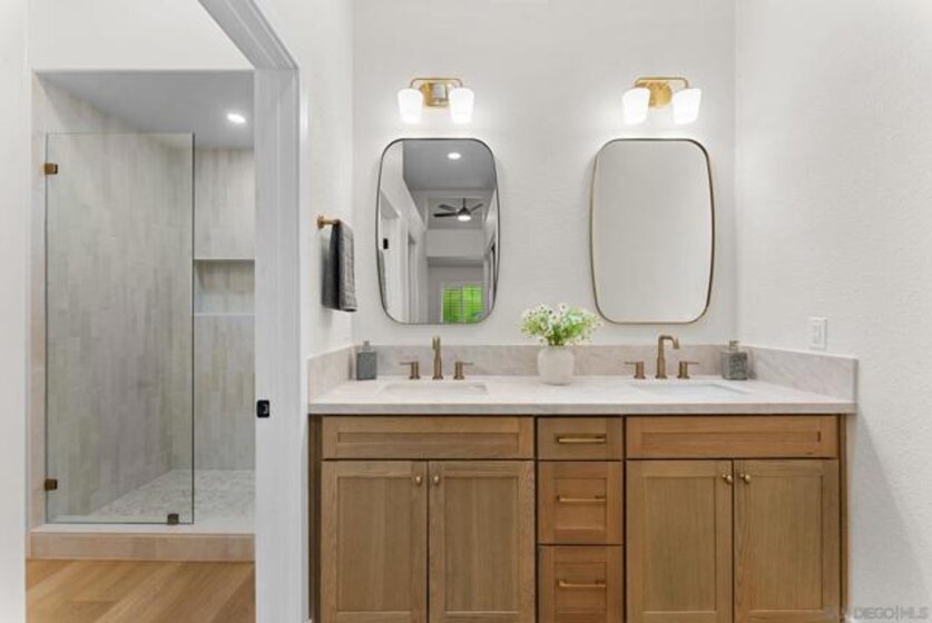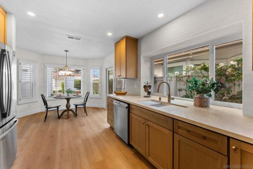 Dwell West Homes presents it's newest Ocean Hills stunner- Welcome to resort-style living in this vibrant 55+ community with an active lifestyle and full social calendar. This beautifully renovated home was redesigned with professional designer guidance and showcases modern finishes throughout. Inside, enjoy true peace of mind with a FULL REPIPE WITH PEX — a major, high-value upgrade w/ lifetime warranty — along with a brand-new 4-ton furnace to stay a comfortable temperature all year long. The interior features new paint, luxury vinyl plank flooring throughout, updated doors and hardware, mirrored closet doors in bedrooms, and all-new light fixtures including recessed lighting, fans, and upgraded fixtures. The designer kitchen offers white oak shaker cabinetry, quartz countertops, tiled backsplash, and new stainless steel appliances—perfect for everyday living and entertaining. The spacious primary suite includes a spa-inspired bath with white oak shaker double vanity, quartz countertop, water closet, upgraded fixtures, and a tiled shower. The secondary bath offers Jack-and-Jill access, freestanding vanity, upgraded fixtures, and a tiled tub/shower. This beauty is located in Ocean Hills Country Club, a premier 55+ resort community set on 350 acres, residents enjoy an 18-hole executive golf course, Jr. Olympic solar-heated saltwater pool, tennis, pickleball, bocce, paddle ball, shuffleboard, croquet, dog park, and a 2¼-mile walking path. The community center features a full fitness facility, locker rooms, computer lounge, billiards, and multiple hobby and club rooms.