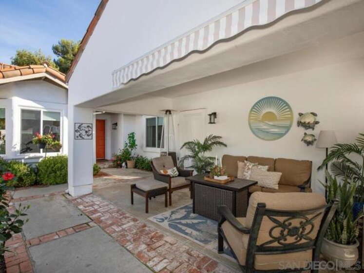 Fully Remodeled Palma Model in Guard-Gated Ocean Hills Country Club. Welcome to this beautifully remodeled Palmer Model residence, ideally situated within the prestigious, private guard-gated 55+ community of Ocean Hills Country Club. Thoughtfully redesigned from top to bottom, this turnkey home offers quality finishes, modern comforts, and an effortless lifestyle in one of North County’s most sought-after active adult communities. The interior features a complete renovation, including all new appliances, a striking new fireplace, and a custom built-in entertainment center that anchors the main living space. French doors throughout to flood the home with natural light and create a seamless indoor-outdoor connection. Solatube lighting in halls. Both the primary and guest bathrooms have been fully upgraded with elegant walk-in showers, while custom closet cabinetry in both bedrooms provides refined and functional storage. The garage continues the home’s elevated design with epoxy flooring and extensive custom cabinetry, offering a clean and highly organized space. Outdoors, the tropical backyard is a private retreat framed by lush, mature landscaping—ideal for relaxing or entertaining. Residents of Ocean Hills Country Club enjoy access to a wide array of resort-style amenities, social clubs, and recreational opportunities designed for active, vibrant living, all within a secure and beautifully maintained community. This exceptional Palmer Model blends luxury, comfort, and resort-style living in a setting that truly supports the next chapter of life.