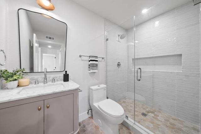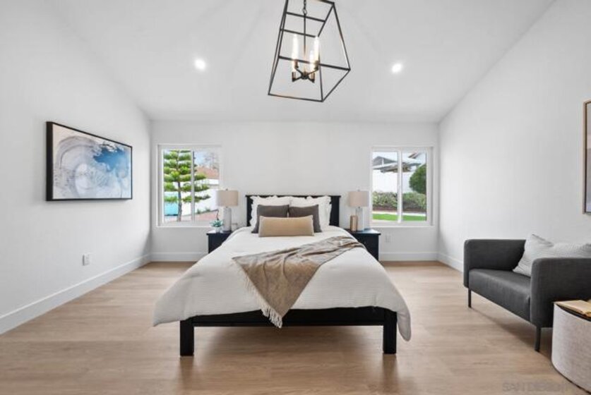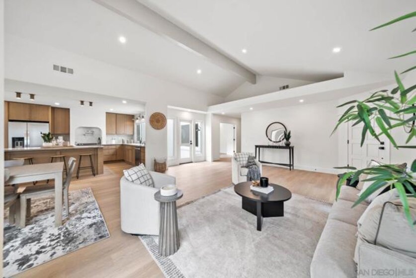 Newly renovated Ocean Hills St. Tropez model offering a seamless transition between indoor & outdoor living featuring a huge and very rare side-yard! This 2 bed/2 bath single level home plus bonus office is an entertainer's dream featuring an open concept living space with soaring vaulted ceiling & exposed beam, recessed lighting, luxury vinyl flooring, a stunning kitchen with spacious island & breakfast bar, timeless cabinetry, dazzling tile backsplash, modern fixtures & finishes, and a charming atrium to further enjoy the outdoors and bring light in! Palatial master retreat with spa-like bath featuring walk-in tiled shower and dual sinks. Low maintenance yard includes patio area with new pergola. Nestled around a private 18-hole golf course, this beautifully maintained and highly sought after 55+ community offers an unparalleled variety of amenities including a heated, Olympic-sized swimming pool, spa, lighted tennis courts, bocce ball courts, fitness center, billiards, and a secure RV storage area. Discover countless ways to stay active with 40 to 50 social clubs & classes! Outdoor lovers will enjoy miles of scenic walking paths, biking trails, and a dedicated dog park for furry companions.