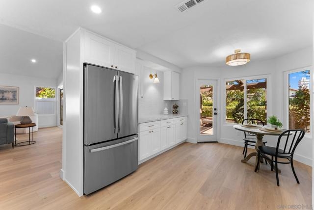 Welcome to resort-style living in one of the most desirable and social 55+ communities in San Diego! This beautifully updated St Tropez model home has been completely refreshed with all-new central forced air and A/C systems, a new 3-ton high-efficiency furnace and condenser, and all new pex water lines throughout the house. The stunning gourmet kitchen features white shaker cabinets, quartz countertops, a designer tile backsplash, and brand-new stainless steel appliances—including a gas range, dishwasher, microwave, and refrigerator. Enjoy natural light from a large picture window and easy patio access for indoor-outdoor living in your own atrium. The primary suite offers a refreshed bathroom with new lighting, mirrors, and a double vanity with natural stone countertop. While the second bath shines with a new freestanding vanity with a quartz countertop and designer finishes. Additional highlights include new dual-pane windows and sliders throughout, French doors to the office, new LVP flooring, and a new black metal front gate. Move-in ready and designed for comfort, style, and community connection!