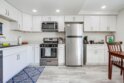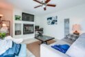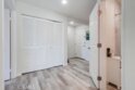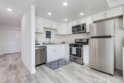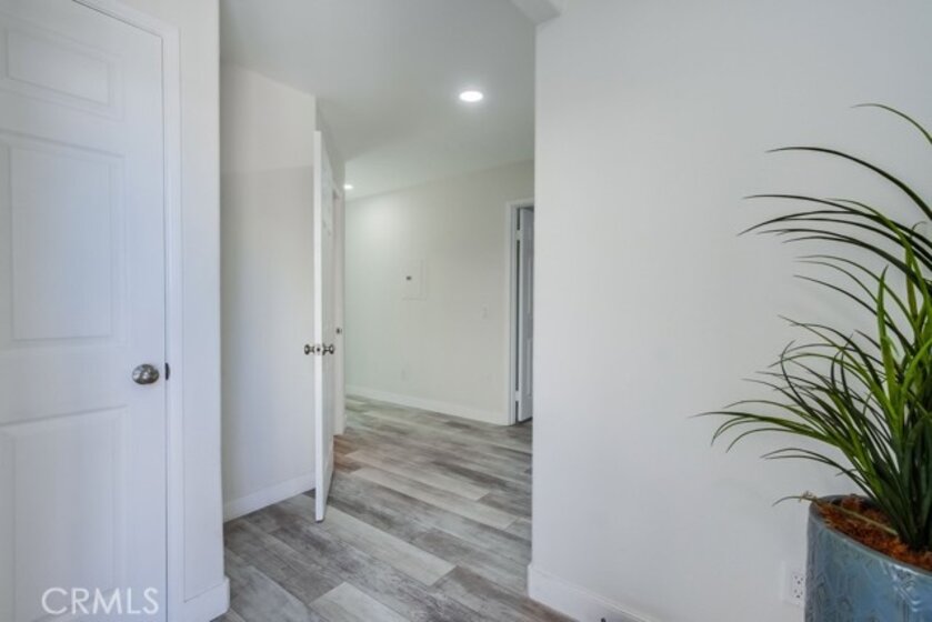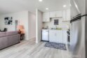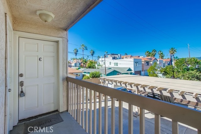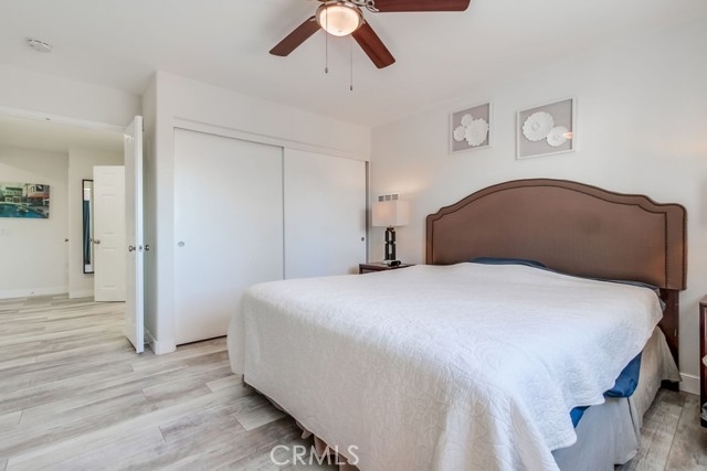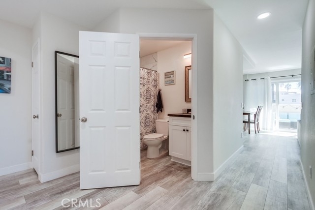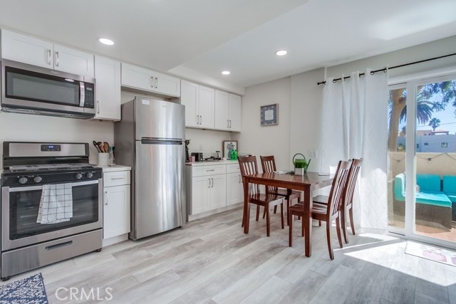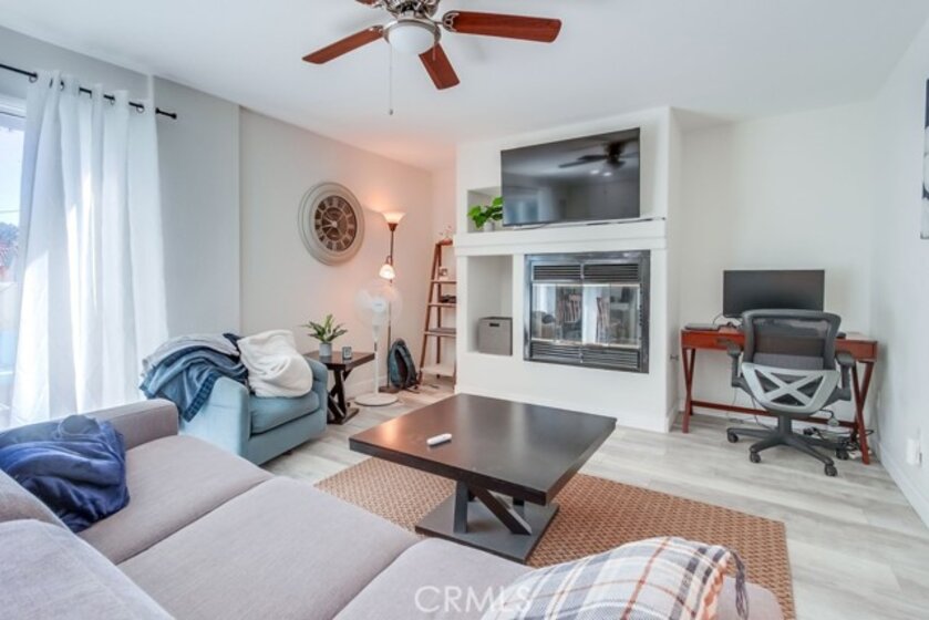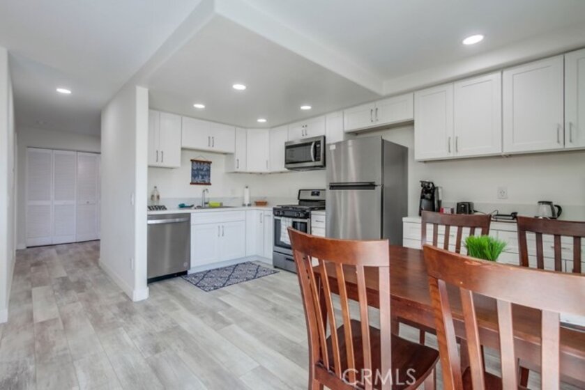 This thoughtfully designed upper-level Oceanside unit offers a clean, modern aesthetic and functional layout, ideal for comfortable coastal living. The entrance opens to a small foyer with a storage/coat closet, while a nearby folding-door space houses the in-unit laundry for added convenience. A full bathroom is accessible as well. Just beyond the entry, a well-sized bedroom features a ceiling fan, generous closet space, and ample natural light from its windows. A central hallway then leads to the heart of the home, where an open-concept layout seamlessly connects the kitchen, dining area, and living room. The kitchen is outfitted with crisp white cabinetry to complement the bright and airy living space. Sliding glass doors open to a private deck, inviting natural lighting and creating a seamless allowing indoor-outdoor experience to complete the space. Recessed lighting throughout enhances the modern feel, while neutral tones create a versatile backdrop for any decor style. With its clean design, functional layout, and upper-level privacy, this Oceanside residence provides a move-in-ready home in a convenient location. The property does come with the furnishings and the HOA does allow for the unit to be a short term rental.