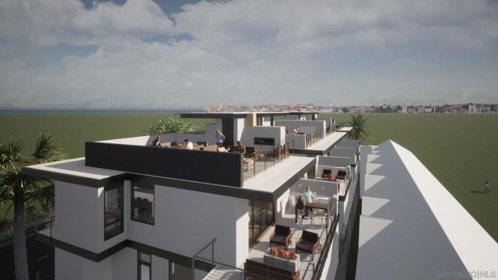 Welcome to Freeman Street Homes, Downtown Oceanside's newest development, nearing completion in 2025. This development offers the perfect blend of modern living and vibrant beach energy, featuring four expansive townhomes, a stylish single-level condo, and two ground-floor commercial spaces—ideal for a live-work lifestyle. This particular townhome spans over 2,200 sqft, showcasing sophisticated architecture and an abundance of natural light. You'll find a striking floating staircase upon entering the unit, and a unique mid-century influence throughout this modern home. Details like rich dark woods, light-colored tiles, captivating wallpaper, and elegant mahogany cabinetry elevate every space, complemented by top-of-the-line fixtures and solid core doors. Plus, enjoy amazing ocean views right from your living space! Beyond the interiors, enjoy 2 private balconies and an incredible 636sqft rooftop entertaining space. Complete with a rooftop fireplace and ambient lighting, making it the perfect place for any gathering. And yes, you'll find even more stunning ocean views from the rooftop, making every moment unforgettable. This unit will not last! Hard-hat showings available. **Images are renderings and subject to change.