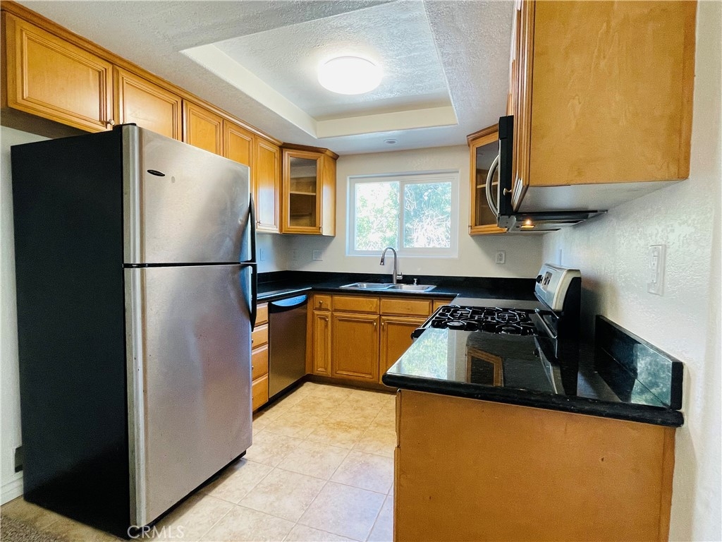Move in ready! This beautiful upper end unit is light and bright with vaulted ceilings, brand new carpet and freshly painted throughout. The stunning kitchen features rich cabinetry, granite countertops, a newer microwave, gas range and new stainless double sink & faucet. The primary bedroom is spacious with a well lit walk-in closet. Other features include a generous sized living room with sliders leading to a balcony, inside laundry with newer washer & dryer, new toilet and new fixtures in the bathroom, newer water heater, dual pane windows, Air Conditioning, and a detached one car garage in addition to an assigned parking spot. Stonemark at Los Morros is a small, gated community with pool & spa, gym & exercise room, BBQ area with outdoor fireplace, and a tot lot. The HOA covers water, sewer, trash, the two gated entries, and maintenance of the grounds. Located close to shops, restaurants, parks, and bike paths and trails to the beach where you'll experience world class surf, the pier and a vacation lifestyle.