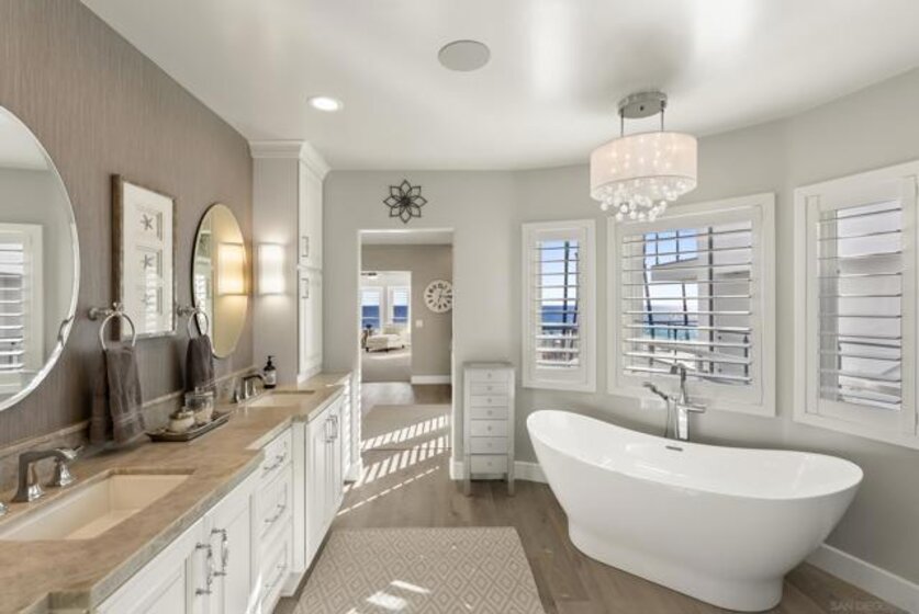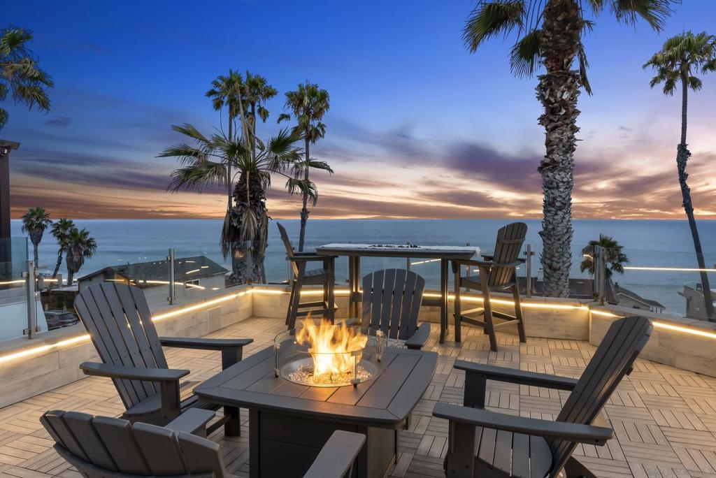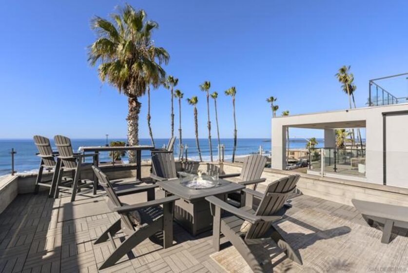 Perched along the Pacific Ocean, 506 South Pacific delivers an elevated coastal lifestyle with panoramic views of rolling surf and unobstructed sightlines to the iconic Oceanside Pier from every level. Designed for both relaxation and entertaining, the massive rooftop deck takes center stage—featuring a built-in BBQ and fire pit, and a refined rooftop lounge and bar that set the scene for sunset gatherings. From morning coffee overlooking the water to evenings immersed in Oceanside’s vibrant, walkable scene, this location offers seamless access to acclaimed dining, local cafés, and the best of coastal living. This 3-bedroom, 4-bath residence spans 3,008 square feet and was fully reimagined in a meticulous top-to-bottom renovation completed in 2020. Designed to live like a detached home, it offers minimal shared walls with no neighbors above or below. Modern interiors blend refined coastal character with designer finishes throughout, while a statement kitchen opens to an expansive living area with sit-down ocean views. The primary suite is a true retreat, featuring a spa-inspired bath and ocean-view soaking tub. Recent improvements include an owned 9.2kW solar system (installed in 2023), complete new HVAC, whole house zoned audio system, a freshly coated roof, whole-house water filtration, and a high-end security system with remote video surveillance —making this an ideal lock-and-leave coastal retreat. Impeccably maintained and truly turnkey, this is a rare opportunity to experience refined design, natural beauty, and dynamic coastal energy in one exceptional offering.