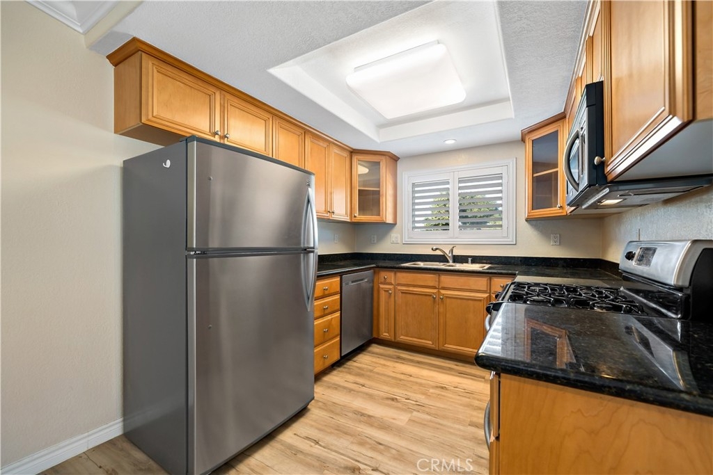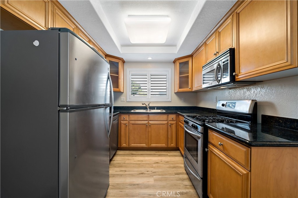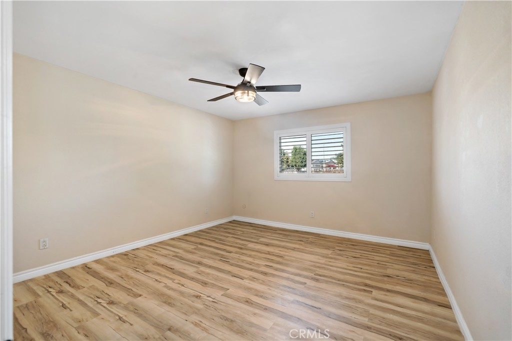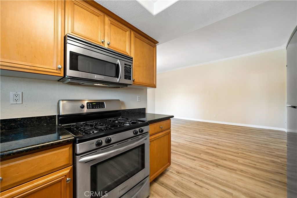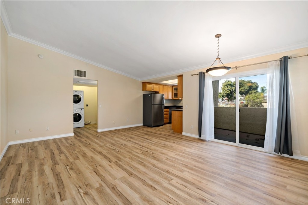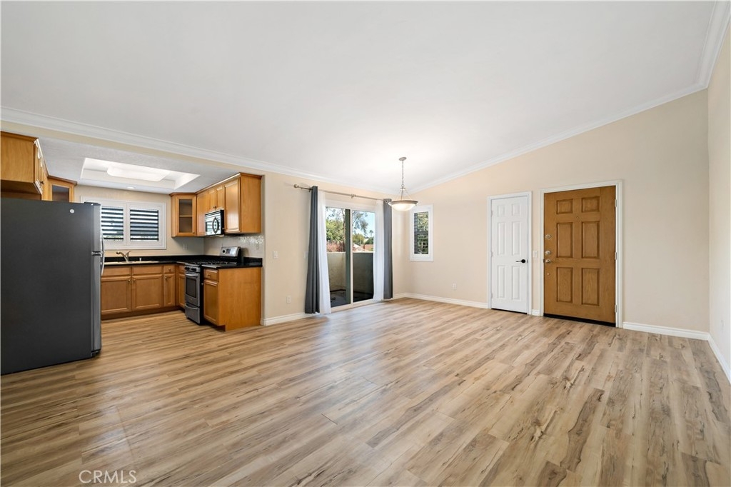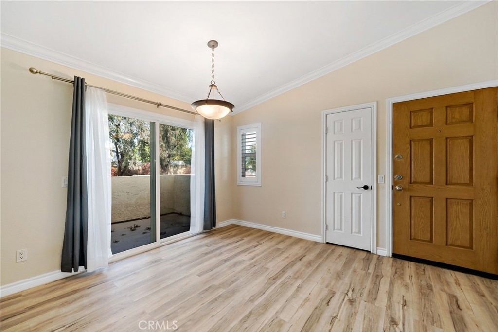 Don't miss out on this pristine, move-in ready Stonemark upstairs 1/1 condo, ideally located near Camp Pendleton, Guajome Regional Park, and the beach! Featuring stunning laminate flooring, a vaulted living room ceiling with crown molding, stainless steel appliances, private patio off of the living room with large sliding door, air conditioning, in-unit washer/dryer, and custom shutters. This condo is designed for modern living with comfort in mind! The community offers great amenities, including a pool, BBQ area, gym, playground, and ample space for walks or enjoying time with your pets in this gated neighborhood. This condo is a must-see!