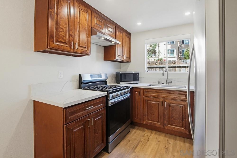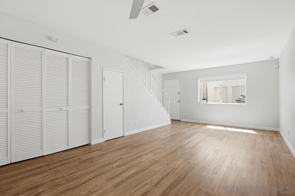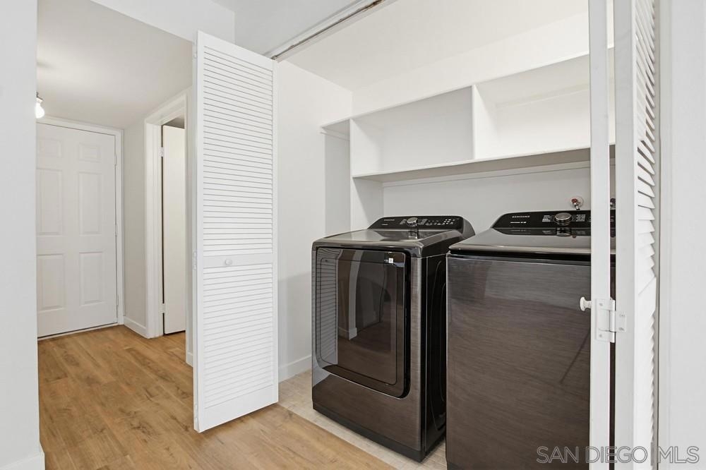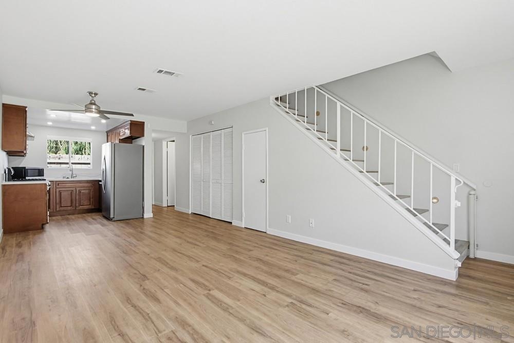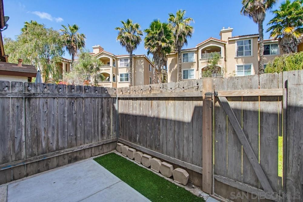 STUNNING 2-bedroom, 1.5-bath townhome offers extensive UPGRADES & the rare benefit of 2 parking spaces - a PRIVATE GARAGE + an additional assigned space. Two year old improvements include a forced air HVAC system, updated plumbing throughout, the kitchen shines with newer appliances, countertops, sink, disposal, and cabinetry, along with a refrigerator featuring a dedicated water line, bathrooms updated with toilets, vanities, tub/shower, sinks, & fixtures, additional upgrades include flooring, fresh interior paint, closet doors, and carpet in the bedrooms. A security system with a doorbell camera adds peace of mind. Inside, you'll find a spacious laundry room with side-by-side washer and dryer, plus extra storage. Step outside to your fully fenced backyard patio, thoughtfully renovated with concrete and turf—perfect for relaxing or entertaining—with direct access to the community greenbelt. Located within a secure gated community, this home truly has it all. closet doors, and carpet in the bedrooms. A security system with a doorbell camera adds peace of mind. Inside, you'll find a spacious laundry room with side-by-side washer and dryer, plus extra storage. Step outside to your fully fenced backyard patio, thoughtfully renovated with concrete and turf—perfect for relaxing or entertaining—with direct access to the community greenbelt. Located within a secure gated community - all of this just 15 minutes to the BEACH. This home truly has it all!