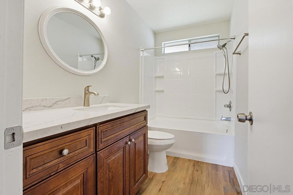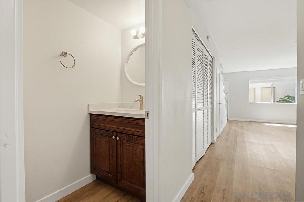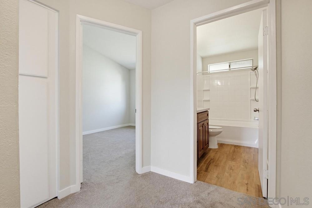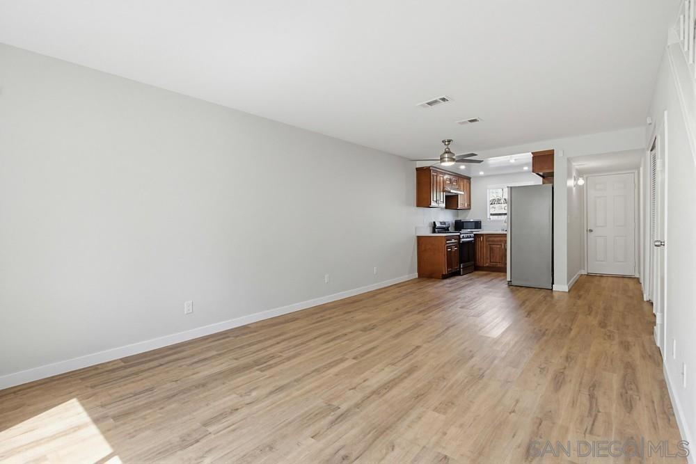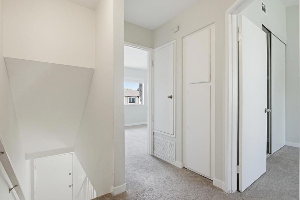 STUNNING 2-bedroom, 1.5-bath townhome offers extensive UPGRADES & the rare benefit of 2 parking spaces - a PRIVATE GARAGE + an additional assigned space. Two year old improvements include a forced air HVAC system, updated plumbing throughout, the kitchen shines with newer appliances, countertops, sink, disposal, and cabinetry, along with a refrigerator featuring a dedicated water line, bathrooms updated with toilets, vanities, tub/shower, sinks, & fixtures, additional upgrades include flooring, fresh interior paint, closet doors, and carpet in the bedrooms. A security system with a doorbell camera adds peace of mind. Inside, you'll find a spacious laundry room with side-by-side washer and dryer, plus extra storage. Step outside to your fully fenced backyard patio, thoughtfully renovated with concrete and turf—perfect for relaxing or entertaining—with direct access to the community greenbelt. Located within a secure gated community, this home truly has it all. closet doors, and carpet in the bedrooms. A security system with a doorbell camera adds peace of mind. Inside, you'll find a spacious laundry room with side-by-side washer and dryer, plus extra storage. Step outside to your fully fenced backyard patio, thoughtfully renovated with concrete and turf—perfect for relaxing or entertaining—with direct access to the community greenbelt. Located within a secure gated community - all of this just 15 minutes to the BEACH. This home truly has it all!