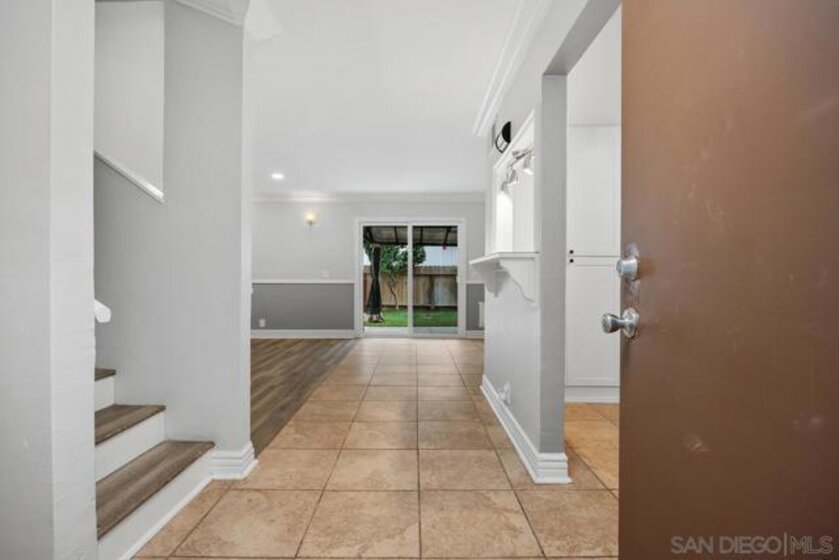 This home has it all, Close to the San Luis Rey gate at Pendleton. New kitchen cabinets, Quartz countertops & backsplas. Newl kitchen appliances, washer/dryer included. Open floorplan with view from kitchen to living room & dining room. Air conditioning, plank flooring & tile in primary living areas & stairs. Vaulted ceiling in large Primary bedroom with ceiling fan. Additional room off of primary, can be used as office space, permits unknown. Good size bedrooms with ceiling fans. Backyard has a covered patio and grass area, great for entertaining.New windows installed. Community pool and spa is a short walk around the corner. Easy to show and seller is motivated.