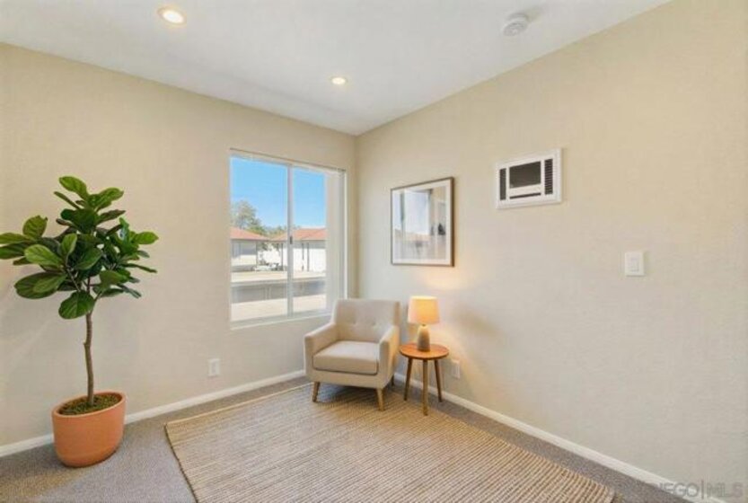 Seller will contribute up to TEN THOUSAND DOLLARS ($10,000) TOWARDS A PERMANENT INTEREST RATE BUY DOWN with accepted offer. Ask your lender/agent how much money that will save every month! This beautiful, well-appointed 3-bedroom condo presents the largest floor plan in the complex, featuring an oversized outdoor patio and a second-story balcony enjoying greenbelt views. Fresh interior paint, recessed lighting, and tile floors across the open-concept living area set a perfect tone. You get an A/C unit for hot summer days, washer/dryer hookups, two assigned parking spots (one covered carport), guest parking privileges, a large community pool, and yes, it is VA approved! The kitchen and dining space boast granite counters, warm wood cabinets, stainless appliances, and a brand-new fridge, flowing perfectly through large sliding doors to the showstopper: a massive ground-level private patio with paver hardscape, tall privacy walls, and mature Sago palms. It is a fantastic outdoor oasis—perfect for entertaining, relaxing, or an outdoor play space. Upstairs, brand-new carpet spans the entire second level, recessed lighting continues above, and the large private balcony offers a second outdoor retreat. Gated Forest Glen provides resort-style amenities like a large pool, BBQ/picnic areas, and lush greenbelts. Prime Oceanside locale near the San Luis Rey River Trail, Harbor, beaches, Hwy-76, I-5, shopping, dining, and Camp Pendleton. Rare at this price, you dont want to miss it!