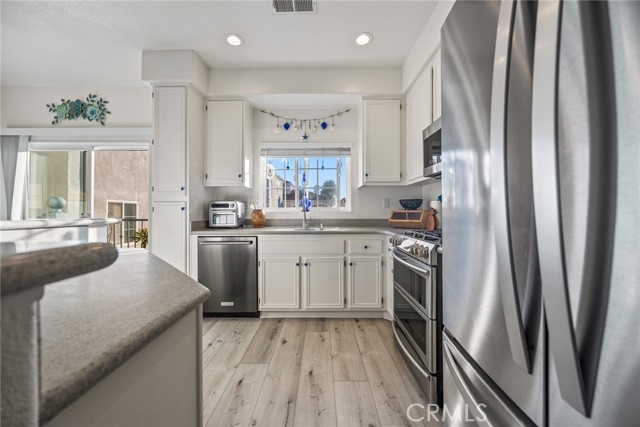 Charming Detached Condo on Rarely Available N.Cleveland St. Welcome to the very best of beach living! This lovely 3-bedroom, 3.5-bath home plus large den is ideally located just 2.5 blocks from Strand Beach. Enjoy the beach lifestyle with easy walk to the Oceanside Pier, Harbor, and all the shops and restaurants downtown has to offer. Perfect for those who appreciate California living at its finest, this home offers an open-concept design filled with natural light and a blend of modern upgrades and coastal charm. The freshly painted interior is complemented by beautiful newer tile and new LVP flooring.The main living area boasts a spacious and bright open concept and soaring 9-foot ceilings, creating an airy atmosphere throughout. It also includes both a hand-scraped ceiling fan and cozy gas fireplace.Catch the sunset while preparing your meals in a kitchen featuring a newer refrigerator, a gas stove, and a peek ocean viewThe home features two master suite retreats with walk-in closets, private en-suite baths, and hand-scraped fans. The bedrooms are generously sized, along with a bonus den offering flexibility for a home office or additional living space.There is a over-sized 2-car garage, and private 4-car driveway. Easy access to two freeways means you're just moments from everything the San Diego area has to offer.Step out the front door to the expansive, beautifully paved and decorated front patio, complete with gas fireplace, perfect for both relaxing and entertaining in the delightful California climate, both day and nighttime. This detached condo offers the privacy of a single-family home with the benefits of low-maintenance living and a low HOA fee. The HOA is funded 50% +, and all rooftops were just inspected and have 8+ years of useful life before needing further inspection.701 North Cleveland St. is the perfect blend of comfort, style, and location. A must-see home! * Pre-Approval letter (loan)/proof of funds (cash) required for showing * By appointment only