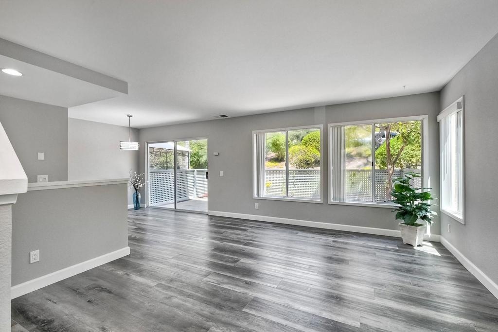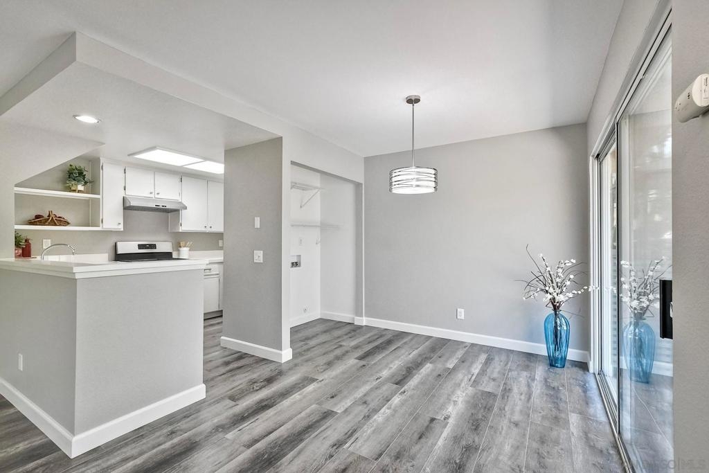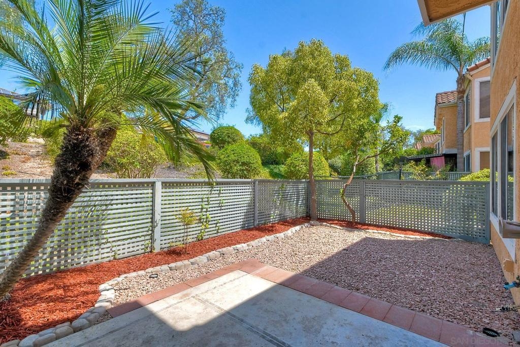 Lovely south facing end unit in the Quail Ridge community of Oceanside! This desirable two story condo has no one above or below and is quiet with no garage directly below the unit. Walking through the entry you appreciate the inviting living room with it’s rich LVP flooring and the light flooding in from four large windows. The kitchen is open to the living room and combines ample tile counterspace, white cabinets and open shelving to create a beautiful and functional workspace. The dining room has a contemporary light fixture and sliding glass door to the back patio, facilitating indoor/outdoor living. On the second level, the primary bedroom has a vaulted ceiling, cooling fan, 4 sizeable windows, cozy carpet and two mirrored closets. The primary bath has a vanity with storage and generous counterspace while windows above a shower/tub combination bring in the breeze and natural light. The second bedroom with it’s large window and mirrored closet is perfect for whatever the homeowner desires: office, workout room or second bedroom. Nearby, the hall bathroom is well appointed and offers another shower/tub combination. The back yard is fenced and has a patio roomy enough for a dining table or conversation area. The surrounding yard is low maintenance with a rock border, gravel and 3 trees. The finished one car garage has an epoxy floor and room for storage or a workbench. Wonderful location 5 miles from the beach, easy freeway access (78, 76 and Interstate 5) and near multiple parks.