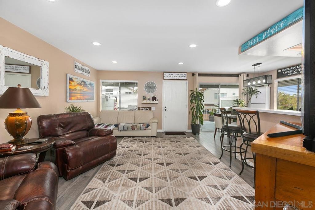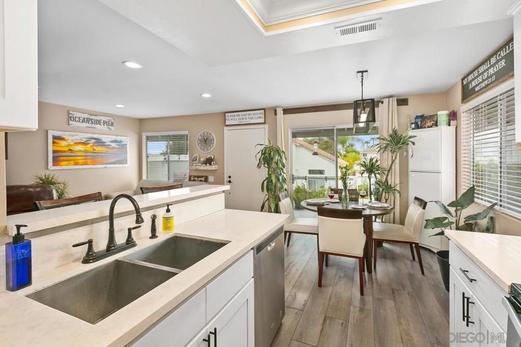 UPGRADED! Located in the desirable Whelan Ranch community, this beautiful upper end unit offers 3 bedrooms, 2 bathrooms, and 1,193 sqft of desirable living space. The oversize deck is perfect for enjoying your morning coffee, or soaking in some afternoon sun. Laminate flooring throughout. The kitchen boasts quartz countertops and stainless steel appliances. Adjacent to the kitchen is the dining area with access to the deck. Spacious living area. The primary bedroom has an attached bath with a tub/shower combo. Spacious laundry room. Afternoon breezes help keep this home cool but there is also AC & ceiling fans. Attached 2 car garage. Community pool, spa, and playground. Close to Camp Pendleton, schools, and shopping. Welcome Home!