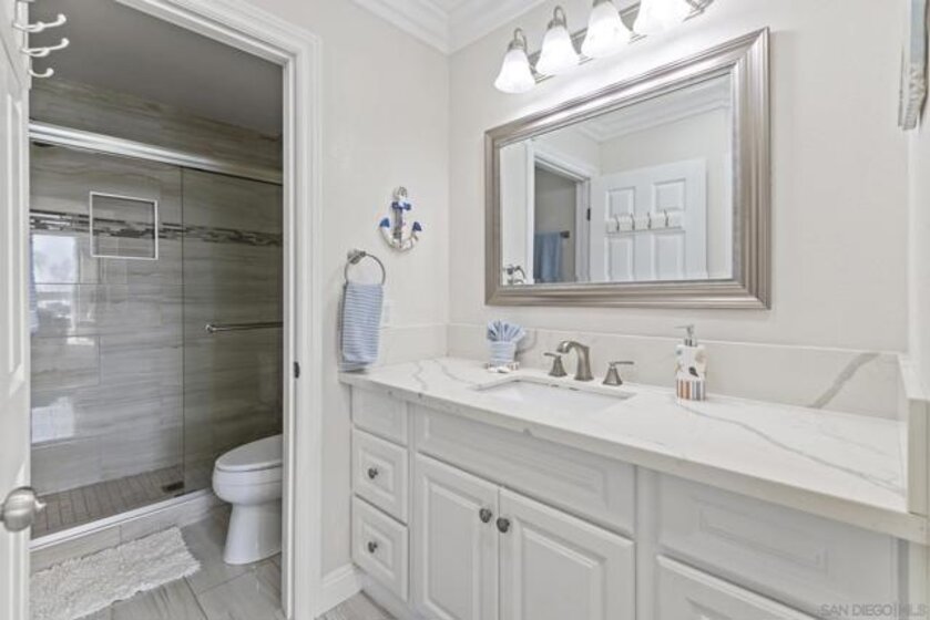 Honey, call me ASAP - our perfect North Coast Village condo just came on the market in our favorite “D” building! As soon as we walk-in we'll have views of the Pier AND all the way to La Jolla from the living room, kitchen, bedroom and balcony. Since it’s a corner unit, the bedroom has TWO windows. The entire condo has been beautifully remodeled and it's being sold furnished. Call ME! This gorgeous beach condo is located at North Coast Village, a tropical oceanfront complex between the Oceanside Pier and the Harbor. You are 35 miles from the San Diego Airport, and 1.2 miles from the Oceanside Train Station. Just steps from the sand, the locale is perfect for romantic walks along one of Southern California's most beautiful beaches. Amenities include reserved garage parking, cable TV, a recreation center, clubhouse with kitchen, massive stone fireplace, cedar walls, and laundry facilities. Located between Oceanside Harbor and Oceanside Pier, it’s a great area for biking, with a scenic trail starting right across the street and historic Pacific Coast Highway nearby. Enjoy spectacular sunsets, dining along the picturesque Oceanside Harbor, live music, and unique shopping. Kayak, boat, and paddle boat rentals, fishing, and whale watching excursions are also available. Downtown Oceanside boasts new renovations, exciting restaurants, and hotels. The Main Street Oceanside Farmers' Market offers fresh produce every Thursday morning, while the Sunset Market provides international food booths and live music Thursday evenings.