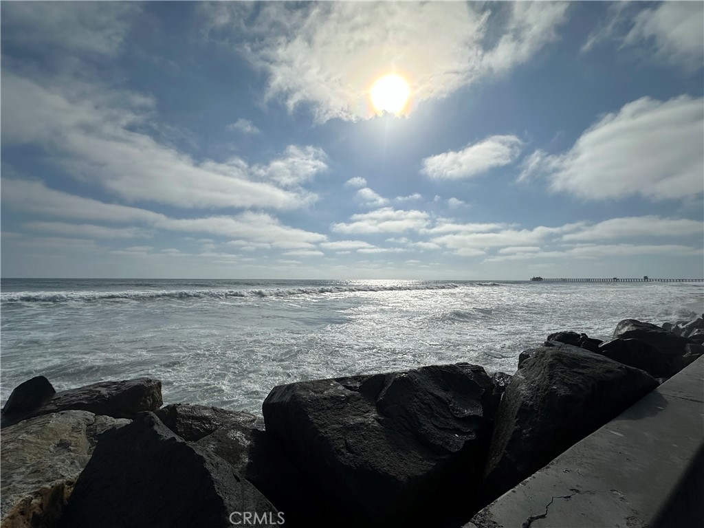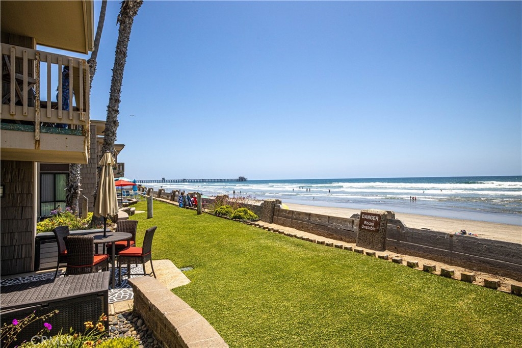 Welcome to your dream ocean front retreat at 999 N. Pacific St, Unit D23. Experience the ultimate in beachfront living at this stunning, fully remodeled condo in the highly sought-after North Coast Village. This luxury coastal retreat offers spectacular, unobstructed ocean views from nearly every room, making it a rare gem in one of Oceanside’s most desirable communities. This unit is one of the very few beachfront ground level walk out units with a private patio and grassy area leading right up to the seawall and sandy beach. The pristine beach is perfect for sunbathing, surfing, or evening strolls along the shore. The relaxing oceanfront patio is the perfect place to unwind, enjoy your morning coffee, and take in breathtaking sunsets over the Pacific. Completely remodeled in 2020 by a professional interior designer, this home features high-end materials and upscale furnishings throughout. The gourmet kitchen boasts premium cabinetry, a marble waterfall island, quartz countertops, and stainless steel appliances, while the open-concept living area is enhanced by elegant finishes, designer lighting, a glass rock remote controlled fireplace and cozy comfortable furnishings. The primary suite offers a tranquil retreat with luxurious updates, and both bathrooms have been beautifully renovated to match the home’s refined aesthetic. North Coast Village offers a resort-style lifestyle with lush tropical landscaping, koi and duck ponds, waterfalls, 2 heated pools and spas, an expansive fitness center, game room, secure garage parking and 24/7 security. Walk to the Oceanside Pier, Harbor, and downtown area boasting vibrant dining and shopping destinations. Don’t miss this opportunity to own a true oceanfront oasis with unparalleled views and direct beach access—coastal living doesn’t get better than this!