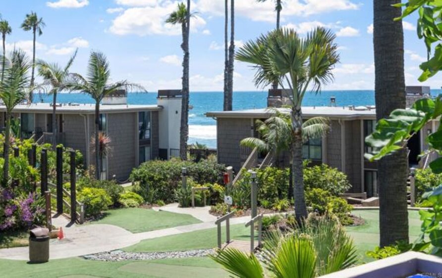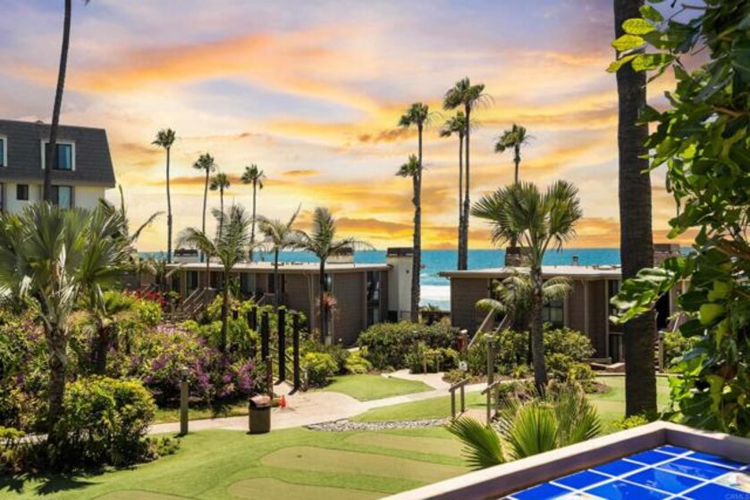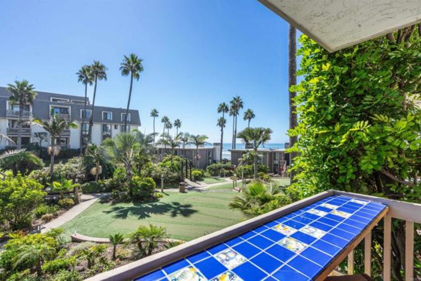 Looking for that sweet beach home? Here it is! Location, location, location- Sit-down ocean, white-water, and pool views from your private balcony in one of the most coveted locations within the OCEANFRONT North Coast Village. Southerly-facing offering to enjoy sunny days and fall asleep to the sound of the waves in a lush tropical oasis you've dreamed of. Highly desirable 'E' Building, just steps from the Ocean. Enjoy morning coffee or a evening glass of wine while watching the surf! Interior highlights include tile flooring, granite countertops in the kitchen and bath, a shower/tub combo, dual-pane windows, a cozy fireplace, and generous closet space. North Coast Village is a lush, 11-acre oceanfront complex nestled between the Oceanside Harbor and the historic Oceanside Pier. This hidden gem feels like a private resort, with amenities including two pools, three jacuzzi's, fitness center, cardio room, saunas, tropical gardens, koi pond, waterfalls, putting green, clubhouse, party rooms, 24-hour security, gated entry, on-site HOA, bike storage, and more. Cable TV & Internet included in HOA fee. Whether you're looking for a weekend retreat, full-time coastal home, or investment opportunity, this is your chance to experience the Southern California lifestyle in vibrant Oceanside—one of SoCal’s hottest beach destinations. Hurry, this beach beauty will not last! Bring all offers!