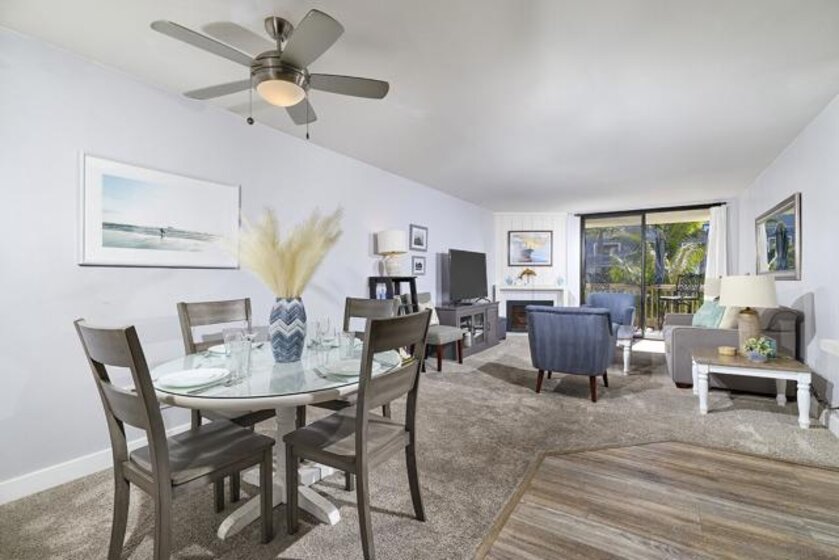 Seller will entertain offers between $699,888-$749,888. This charming beach condo offers breathtaking Pacific Ocean, serene tropical garden and sparkling pool vistas. Take in the lush tropical landscaping, the refreshing pool area, and sweeping ocean views right from your private space. Prepare meals in the beautifully updated kitchen, complete with white shaker cabinets, quartz countertops, stainless steel appliances, and wood-look flooring. The inviting living room is comfortably furnished with a sofa bed and 2 chairs. Outside your door, the lush, resort-style complex offers gorgeous tropical gardens, walking paths, meandering streams, and waterfalls. Enjoy access to heated pools and spas, a newly refurbished gym, saunas, billiards, ping pong, a putting green, Koi ponds, and barbecue area. This gated community provides 24-hour security for peace of mind, along with a reserved underground parking space. Sold furnished! This gorgeous beach condo is located at North Coast Village, a tropical oceanfront complex between the Oceanside Pier and the Harbor. You are 35 miles from the San Diego Airport, and 1.2 miles from the Oceanside Train Station. Just steps from the sand, the locale is perfect for romantic walks along one of Southern California's most beautiful beaches. Amenities include reserved garage parking, cable TV, a recreation center, clubhouse with kitchen, massive stone fireplace, cedar walls, and laundry facilities. Located between Oceanside Harbor and Oceanside Pier, it’s a great area for biking, with a scenic trail starting right across the street and historic Pacific Coast Highway nearby. Enjoy spectacular sunsets, dining along the picturesque Oceanside Harbor, live music, and unique shopping. Kayak, boat, and paddle boat rentals, fishing, and whale watching excursions are also available. Downtown Oceanside boasts new renovations, exciting restaurants, and hotels. The Main Street Oceanside Farmers' Market offers fresh produce every Thursday morning, while the Sunset Market provides international food booths and live music Thursday evenings.